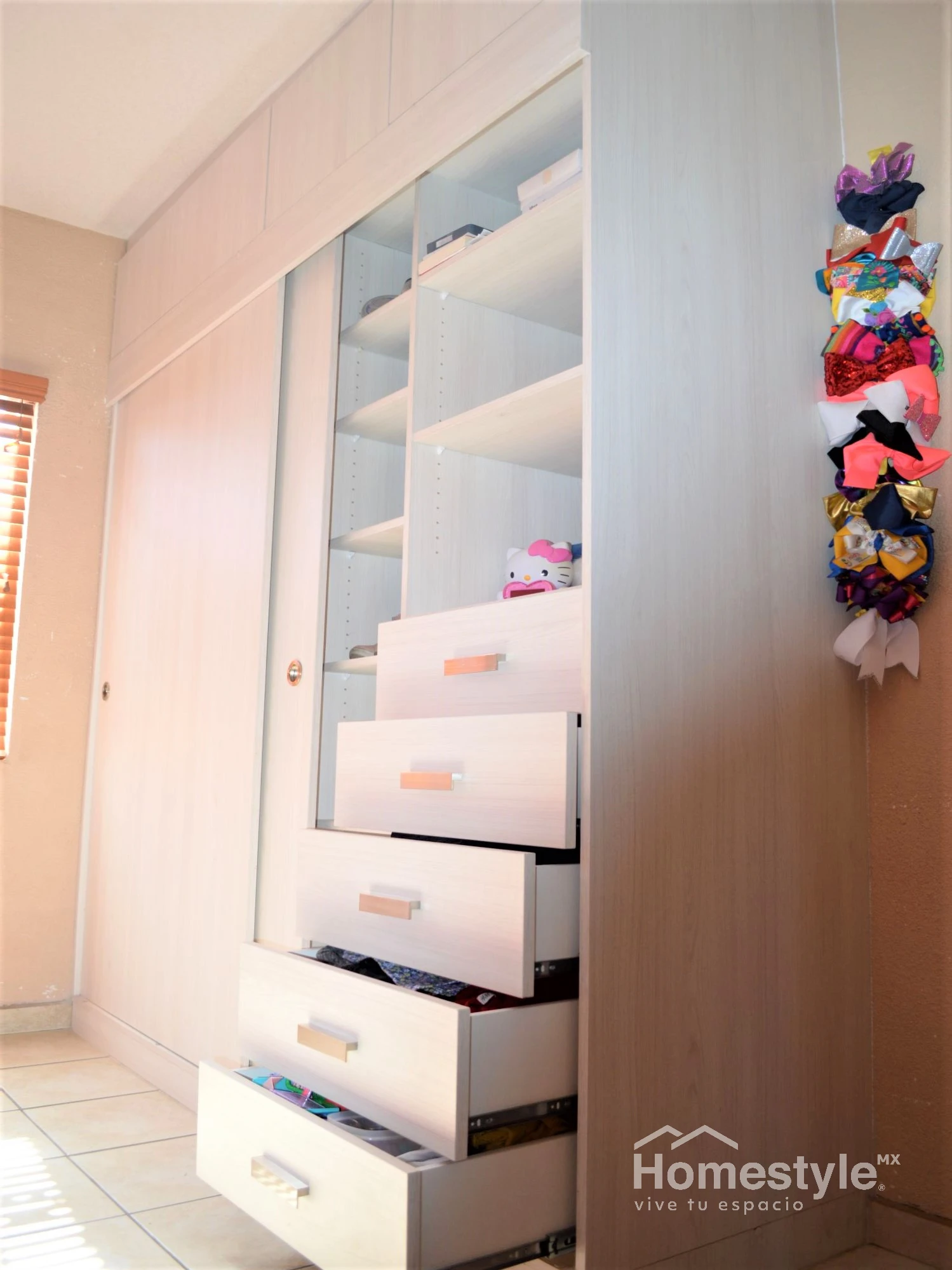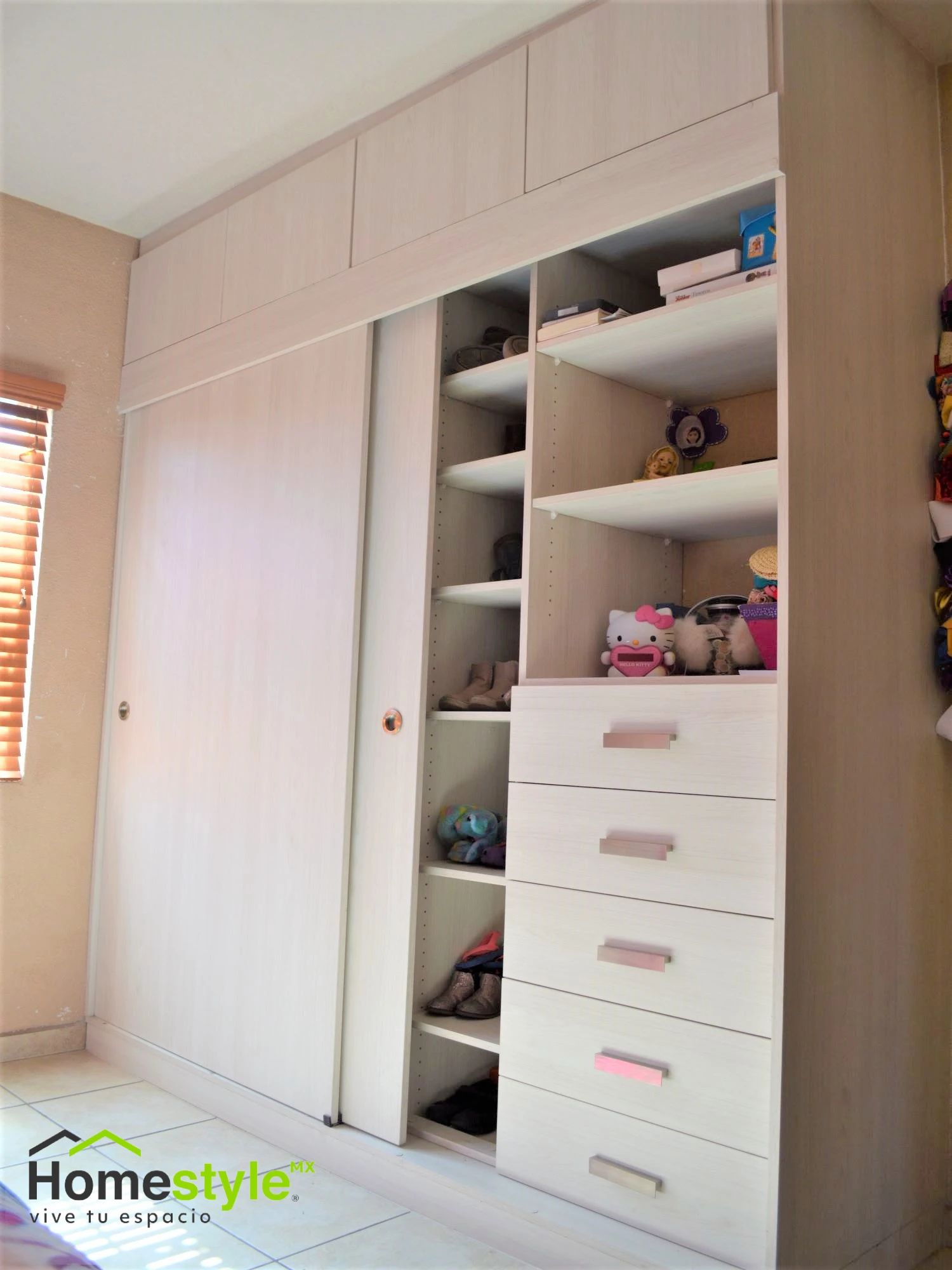 Clóset en forma Lineal con amplias dimensiones para un mejor uso del almacenamiento. Diseñado en melamina Vesto Teka Artico.