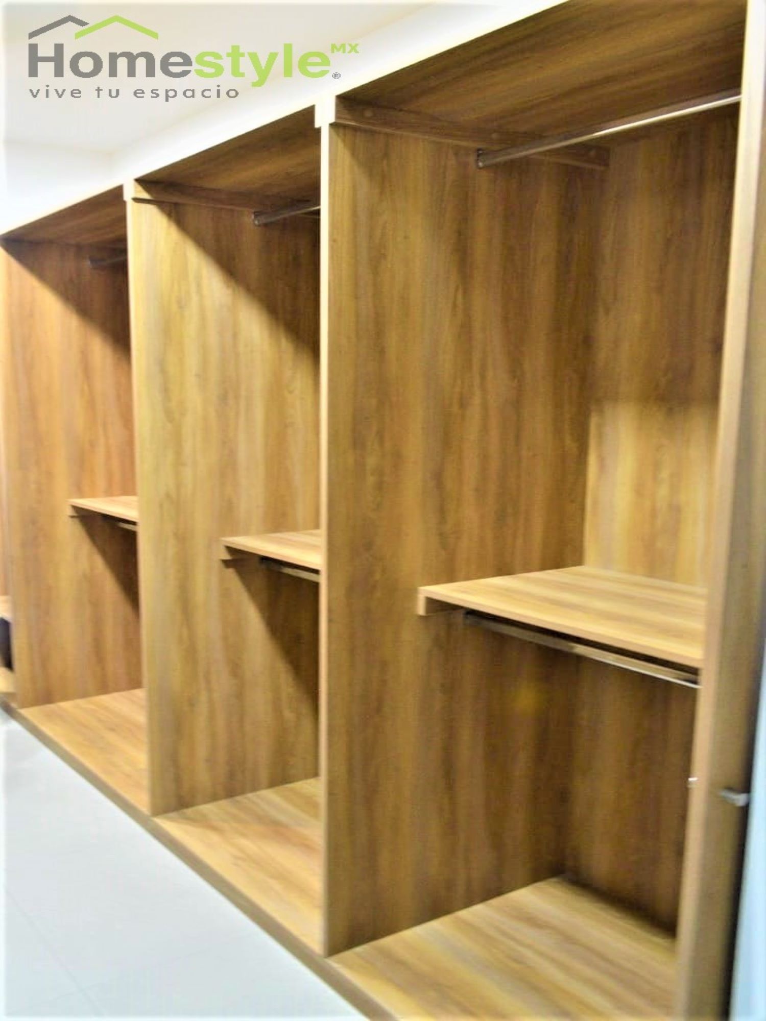 Walking Closet en forma lineal paralelo, diseñado en melamina Vesto Moscato en su totalidad.