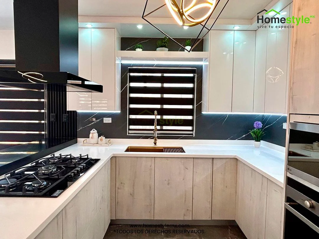 | Materiales | * Melamina Alaska, MDF Alto Brillo Blanco, Melamina Gris Humo y Melamina Vizcaya * Superficie Sólida Frosty White y Black Onyx Mirage |
