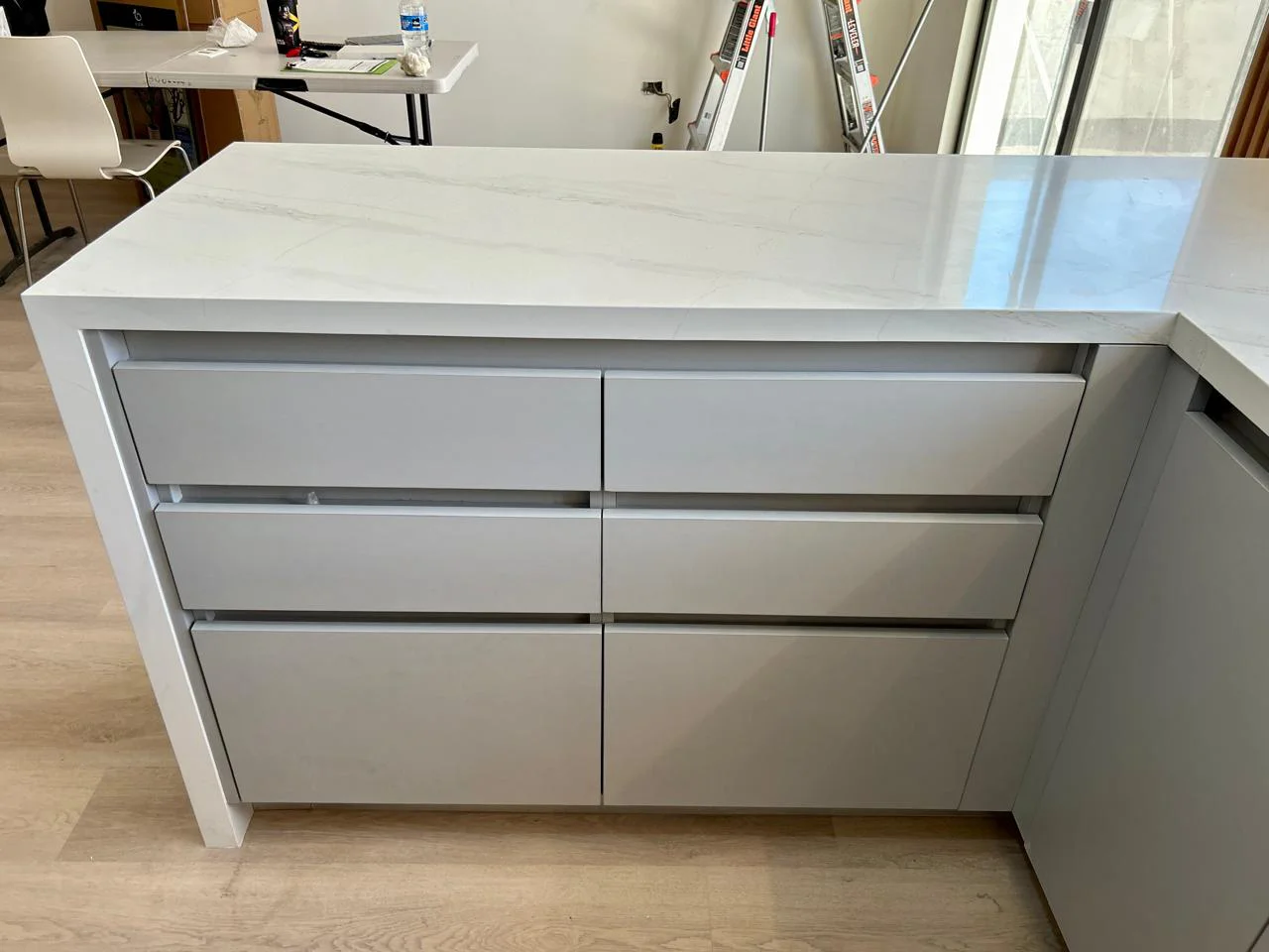 | Materiales | Melamina Gris, MDF Alto Brillo Blanco, Melamina Monarca |