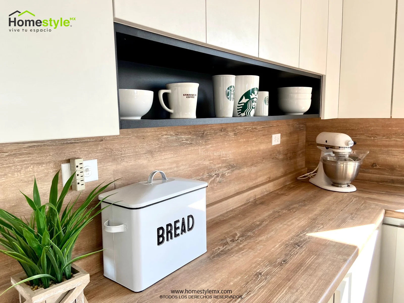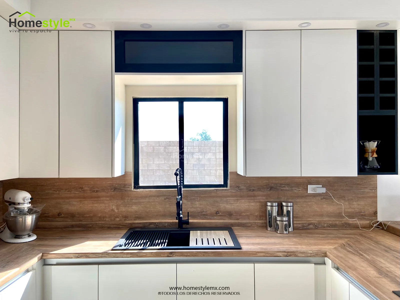 | Materiales | Melamina Bestboard Blanca y Melamina Bestboard Negra. Cubierta y Blacksplach: Formaica Rovere Slavonia |