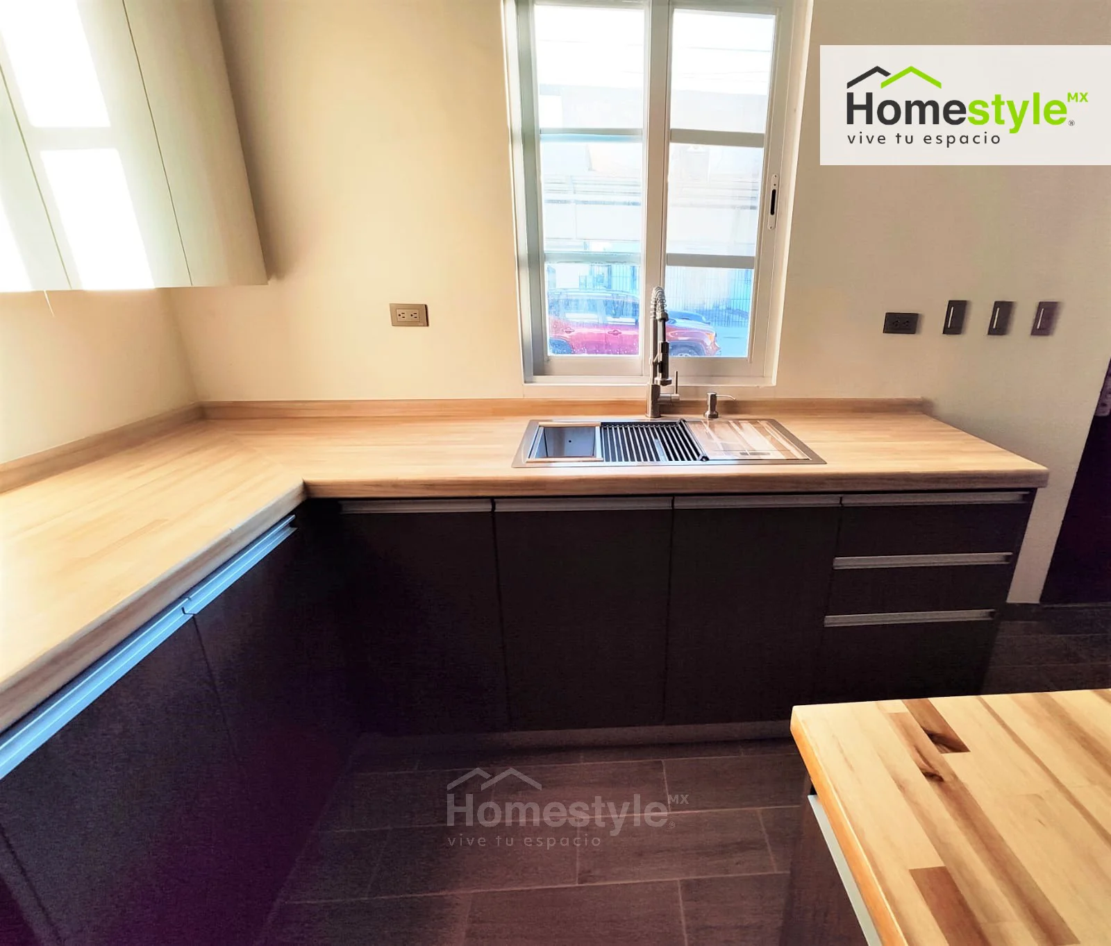 | Materiales | Melamina Vesto Roble Dakar y Teka Artico. Cubierta: Formaica Maple modelo Viena |