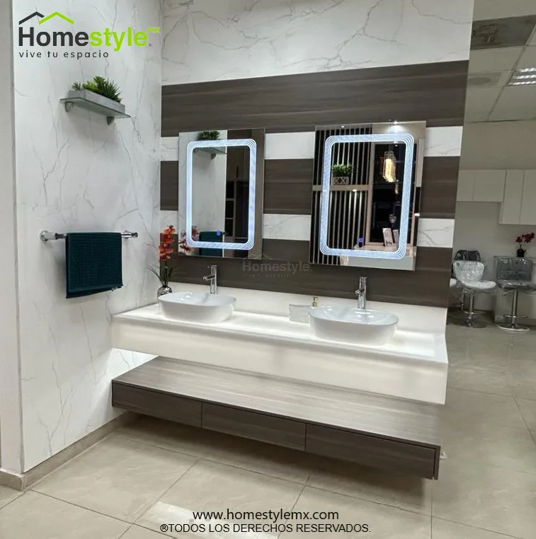 Mueble flotante con iluminación LED incluida, activación con sensor de movimiento.